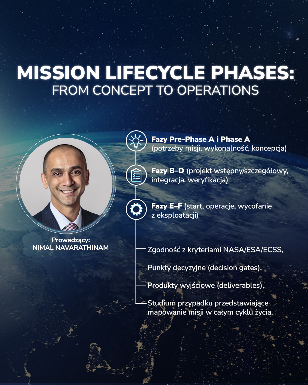Mission Lifecycle Phases: From Concept to Operations (szkolenie w języku angielskim) – Nimal Navarathinam