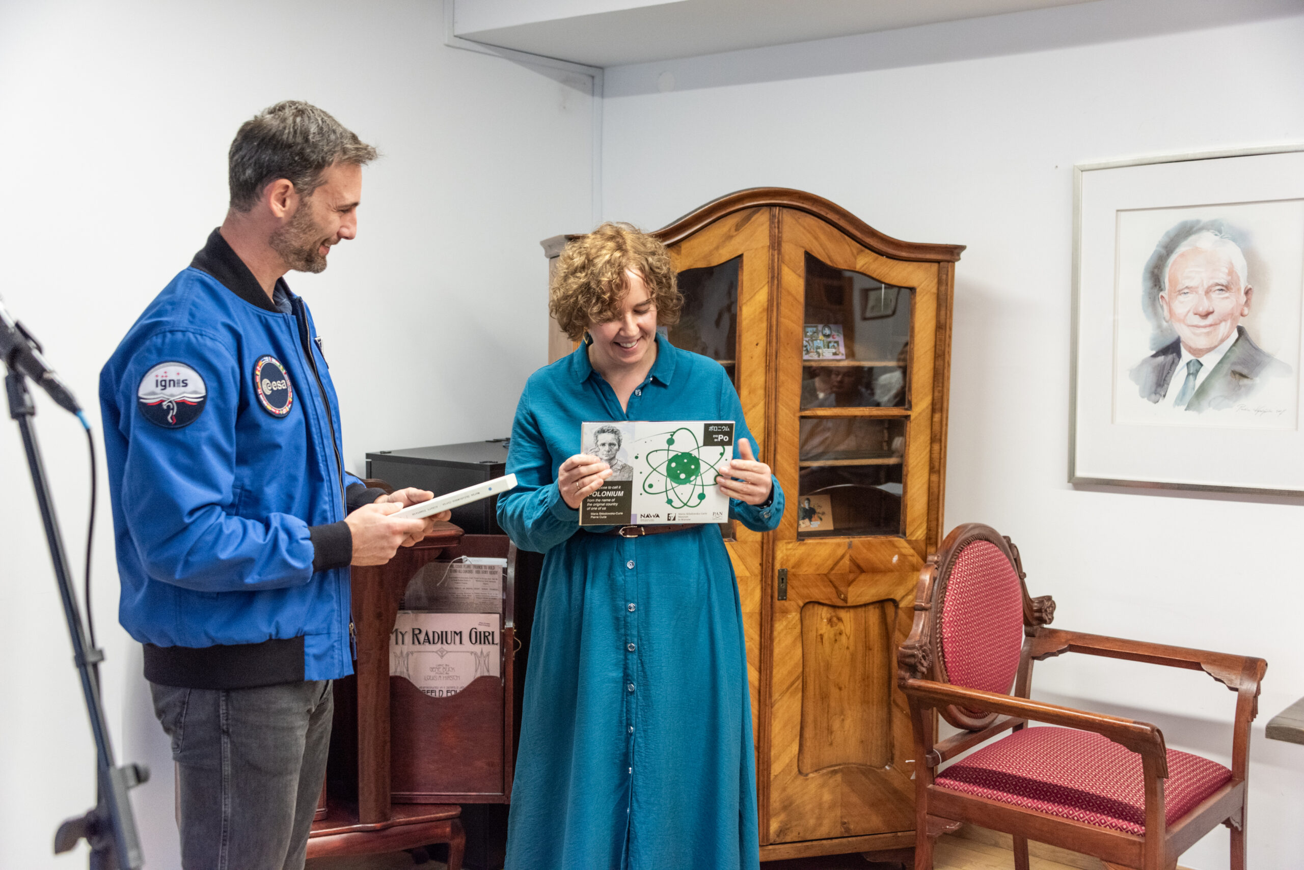 Dr Sławosza Uznańskiego-Wiśniewskiego powitała i pełniła honory gospodarza, dyrektorka muzeum, dr Magdalena Wróblewska, a o obiektach z kolekcji PME, które poleciały w kosmos, opowiedziała Anna Mizikowska, kustosz Muzeum.